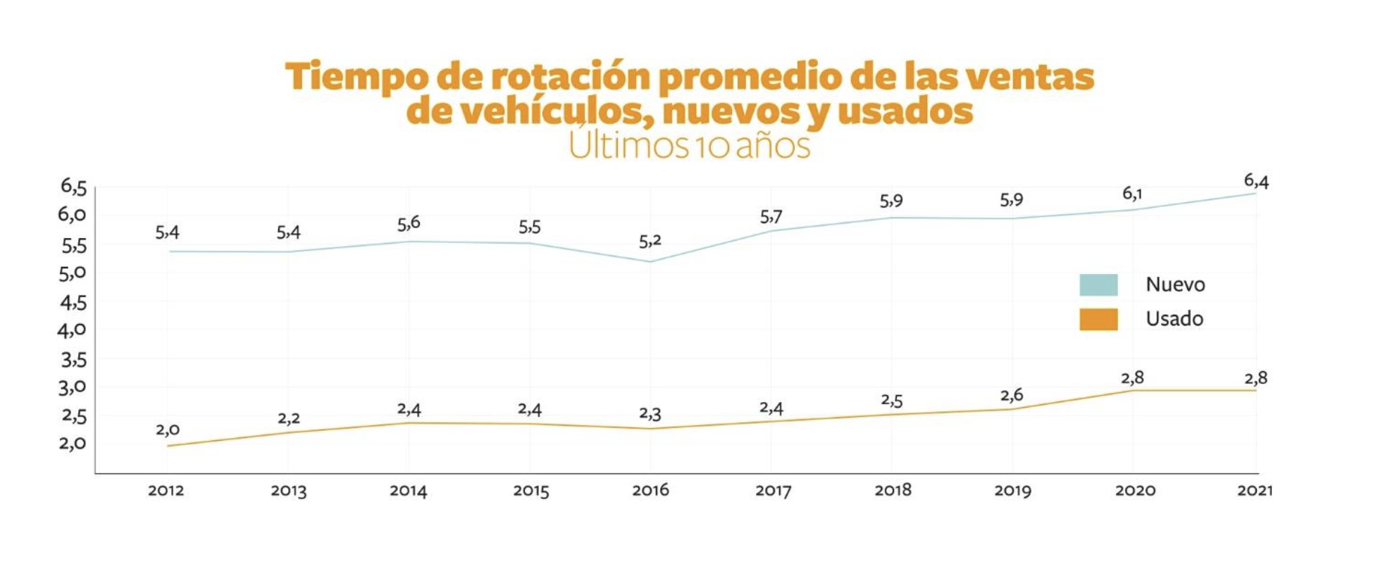 Es interesante destacar que los vehículos usados tienen un alto nivel de rotación en comparación con los nuevos, siendo que las personas conservan los últimos por el doble de tiempo que los vehículos usados.